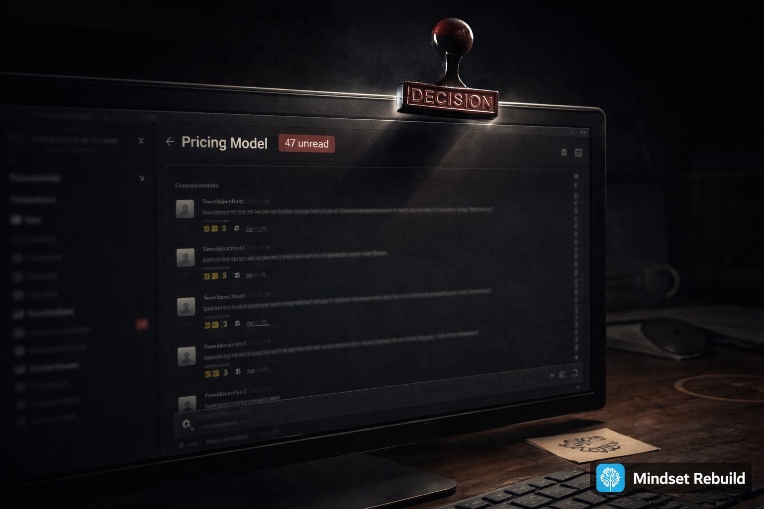 If your pricing model thread has 47 unread replies and it’s still “in discussion,” you’re not stuck on execution; you’re stuck on decisions that don’t close. This is a quick look at what open threads really cost and the decision hygiene system that gets momentum back.