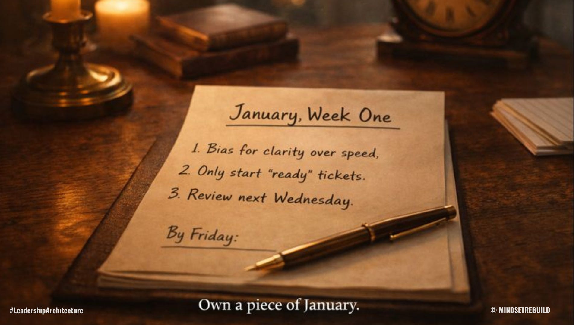 For seven days, a change is âreadyâ only if the ticket has a tiny checklist and a name people can see. Bigger work goes in the backlog with a single sentence about why; weâll pick it up when the ground is steady.The shape it will take