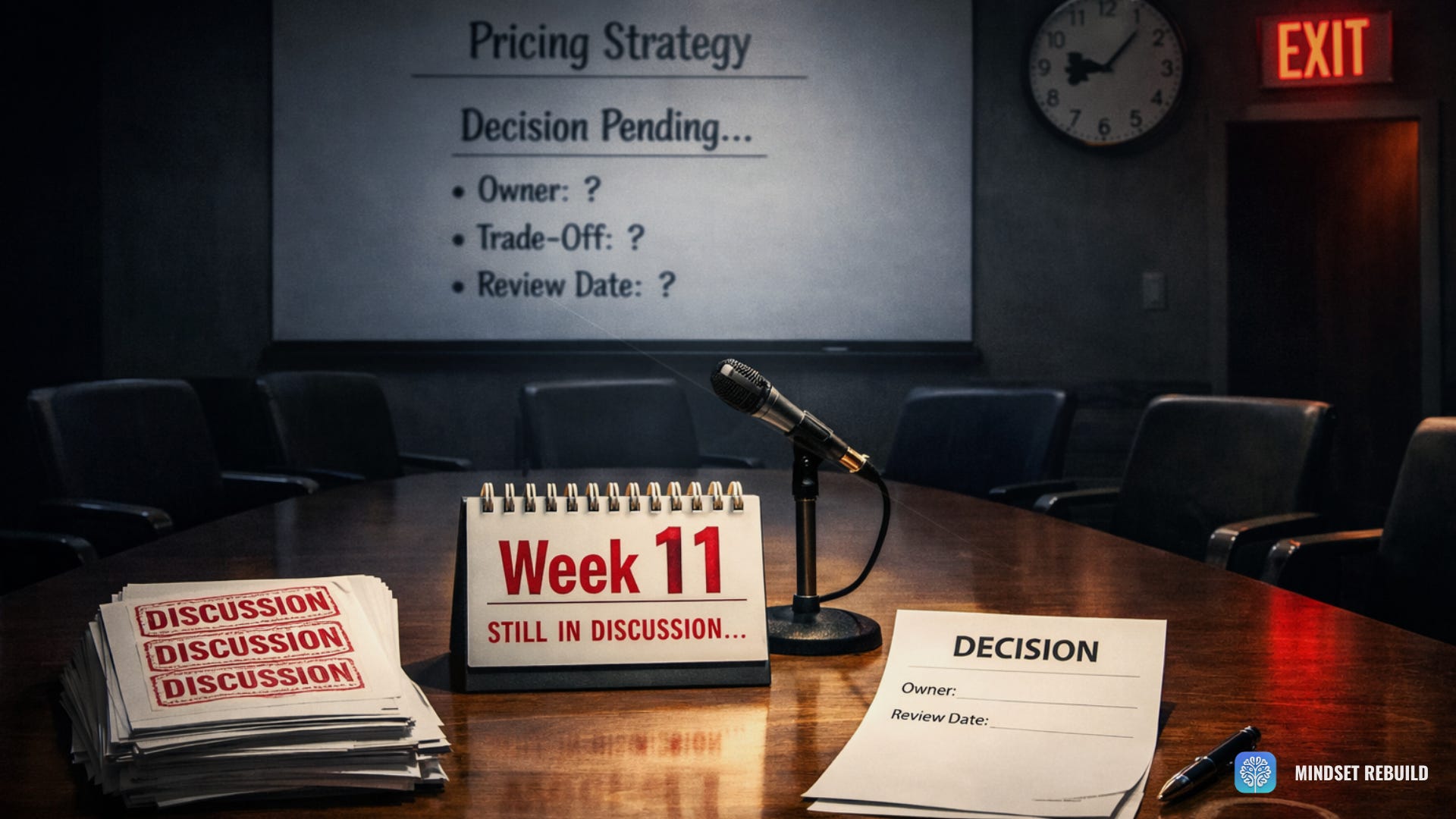 If your pricing decision keeps reopening and remaining “in discussion,” you’re not stuck on execution. You’re stuck because nobody owns the call, the trade-off isn’t documented, and there’s no review date to keep it closed. This is a quick look at the simple decision-close pattern that stops drift and restores momentum.